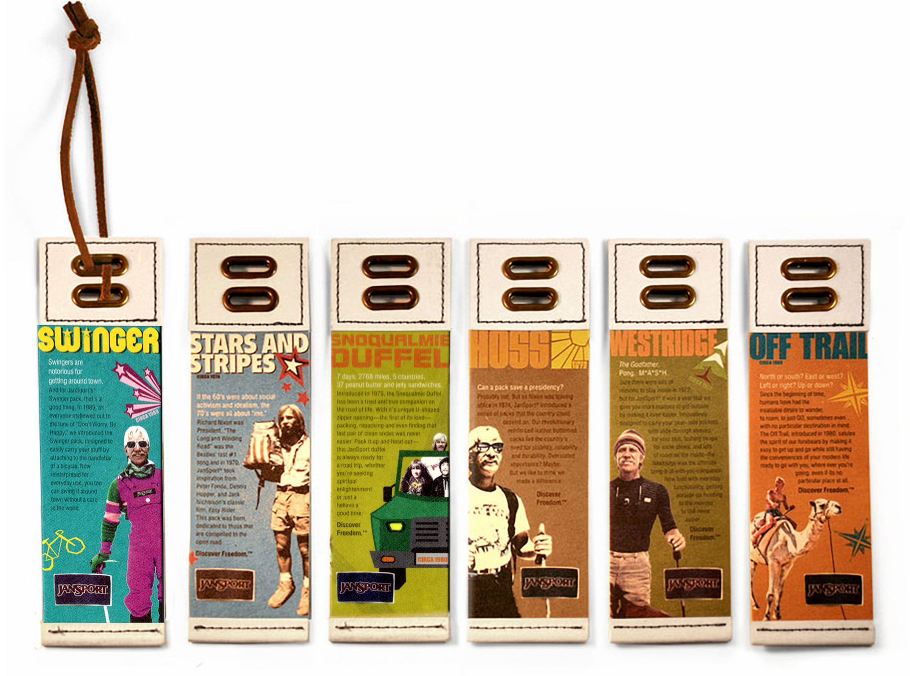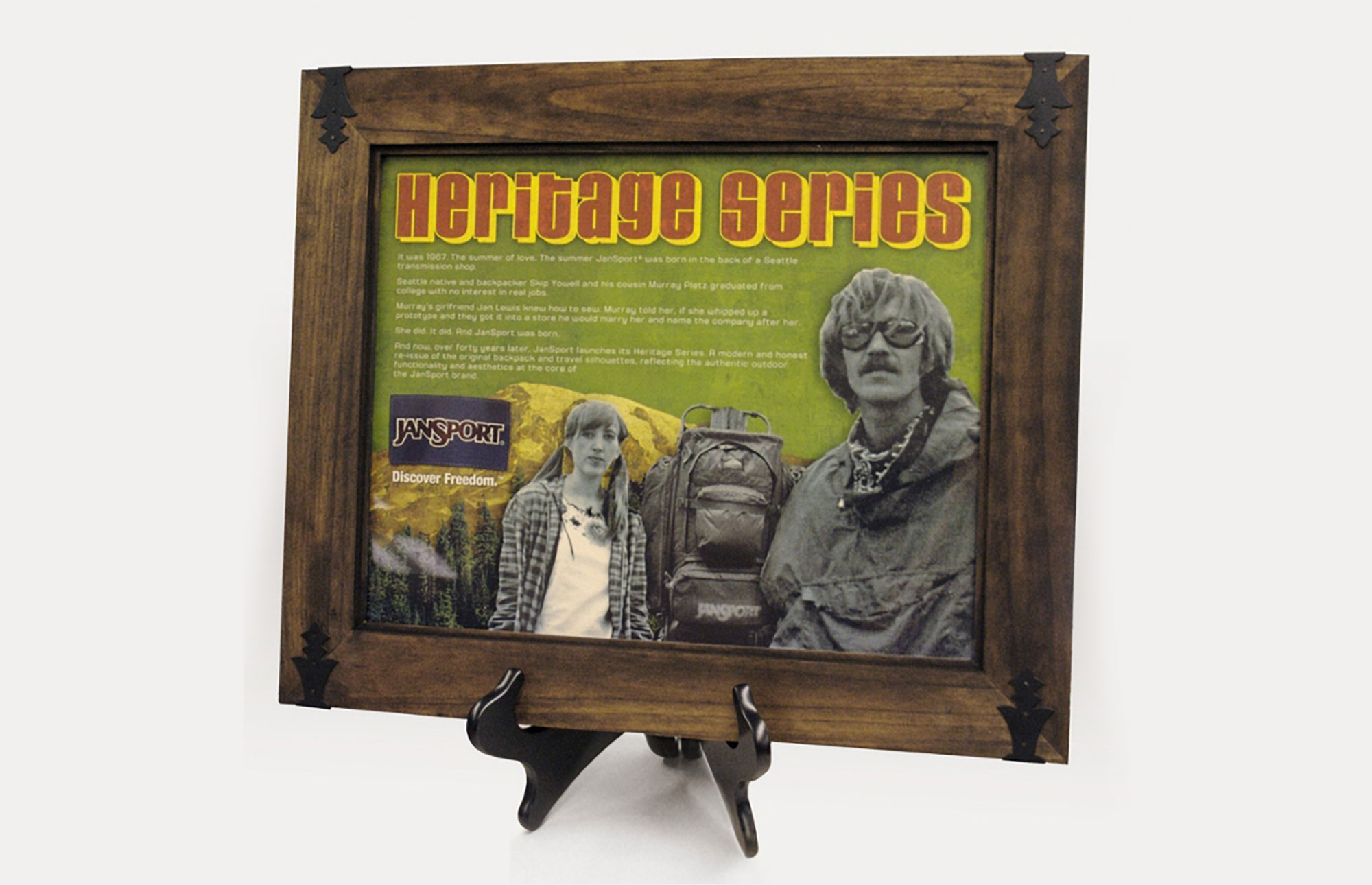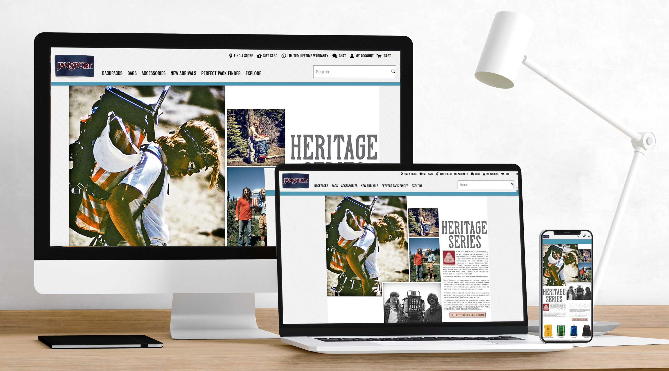 The JanSport Heritage Series celebrates the brand’s roots, and the creative team was responsible for bringing that legacy to life through thoughtful visual storytelling and design. From concept to execution, the team art directed all supporting marketing materials—including hangtags, web content, point-of-sale displays, and the product catalog—ensuring every element reflected the collection’s retro authenticity and timeless durability. Inspired by the original packs and the founders’ vision, the creative team developed a cohesive visual language that honored the past while staying relevant for today’s adventurers, capturing the spirit and soul of the Heritage Series across every touchpoint.